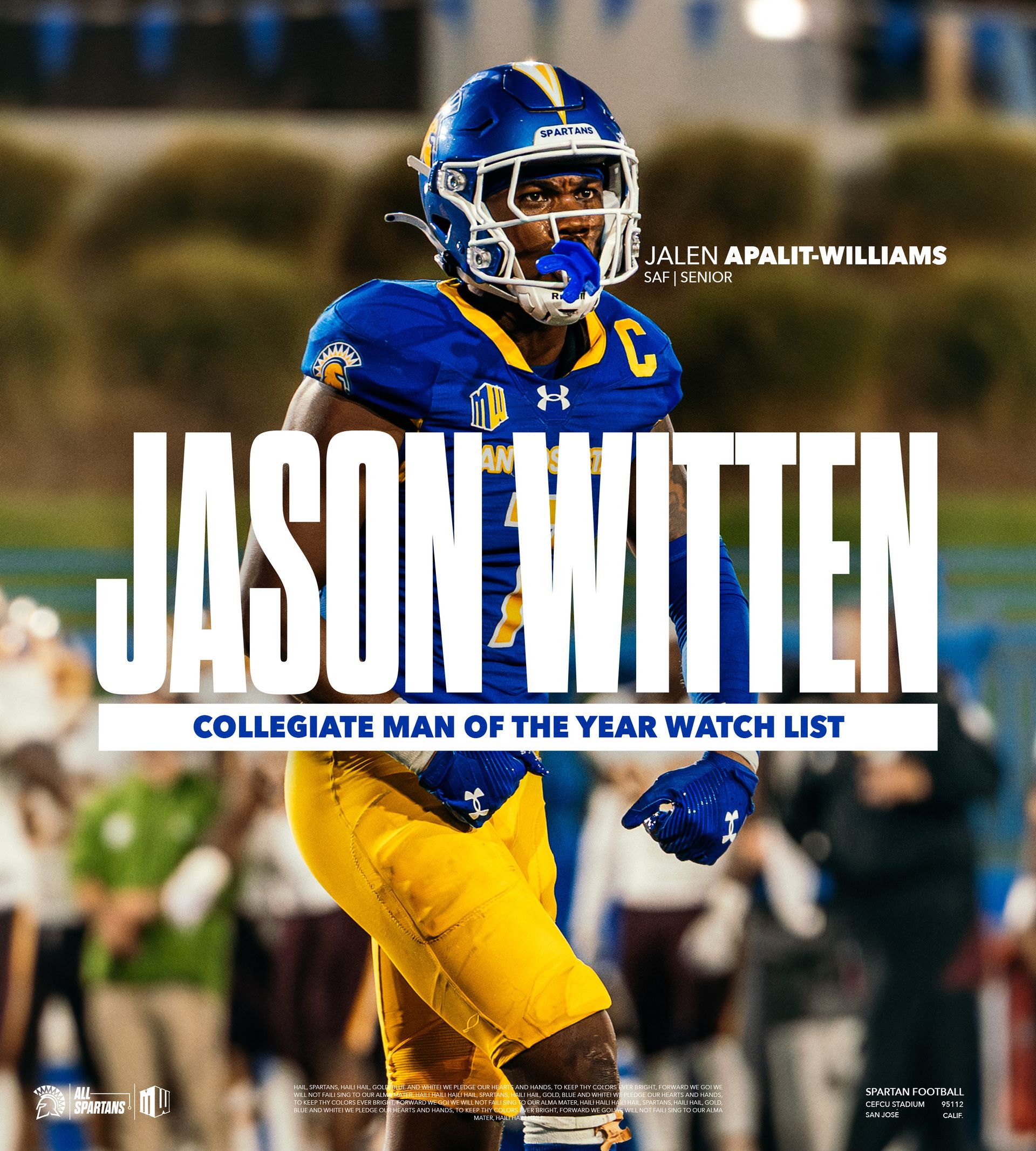 🔼 Making The List. SJSU defensive back Jalen Apalit-Williams has been named to the watch list for the 2025 Jason Witten Collegiate Man of the Year Award.