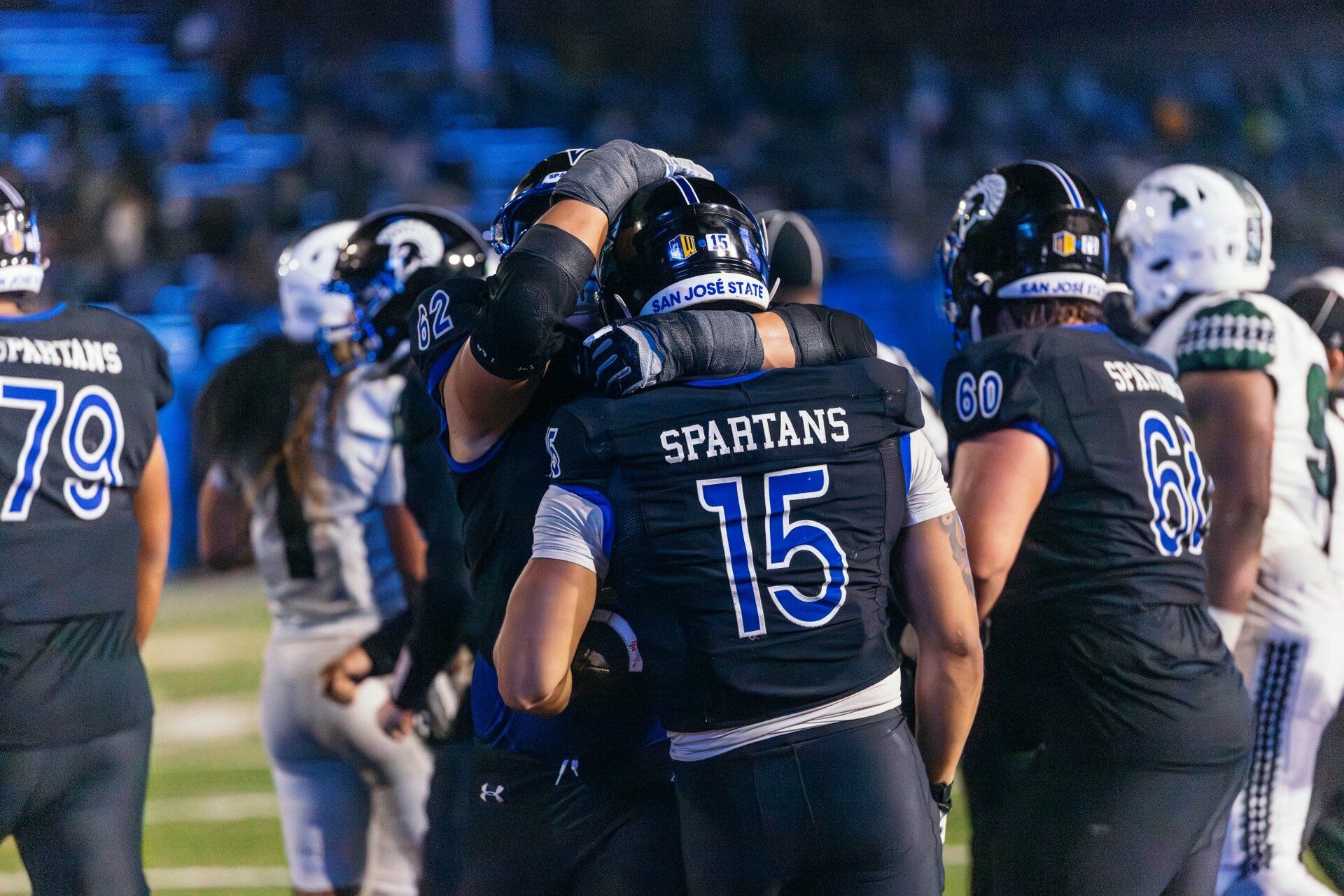 Walker Eget threw for 458 yards and two touchdowns, Danny Scudero recorded a career-high 215 yards and two touchdowns, Steve Chavez-Soto tallied a career-high three rushing touchdowns and Jordan Pollard notched a forced fumble, a sack, two tackles for a loss and eight tackles to lead the SJSU football squad to a thrilling 45-38 victory over Hawai’i on Saturday night, presented by Habbas Law in the Dick Tomey Legacy Game.