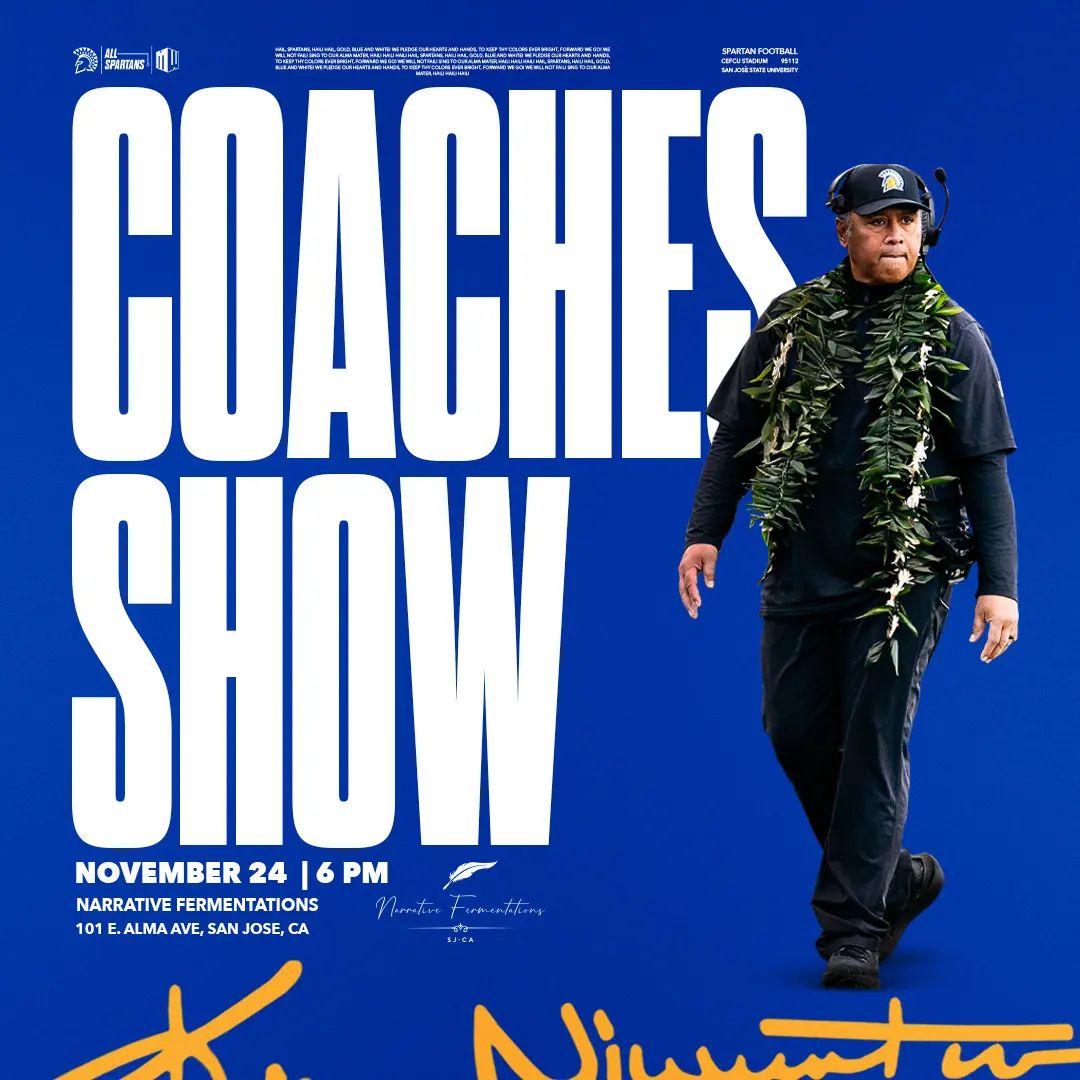 Join us on Monday, November 24th at 6 PM for the San José State Football Coach’s Show at Narrative Fermentations (101 E. Alma Ave, San Jose)! Hear from the coaches, talk Spartan football, and enjoy great beer and great company as we get ready for the upcoming game against Air Force. 💛💙